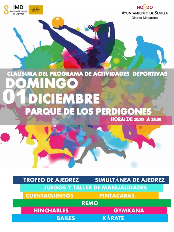 - El próximo domingo 1 de diciembre tendrá lugar la clausura de ajedrez y actividades deportivas del Distrito Macarena, en horario de 10.30 a 14.30 horas en el Parque de los Perdigones.