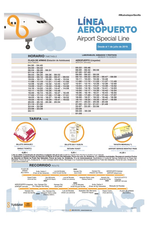 El Ayuntamiento de Sevilla, a través de la empresa municipal de transportes Tussam, ampliará a partir de esta semana en torno a un 15% las plazas que se ofrecen en la línea aeropuerto. Esta medida se adopta a través de la incorporación de cinco vehículos de 15 metros, recién adquiridos por la empresa, así como con un reajuste de las expediciones para mejorar la prestación del servicio en determinadas franjas horarias.