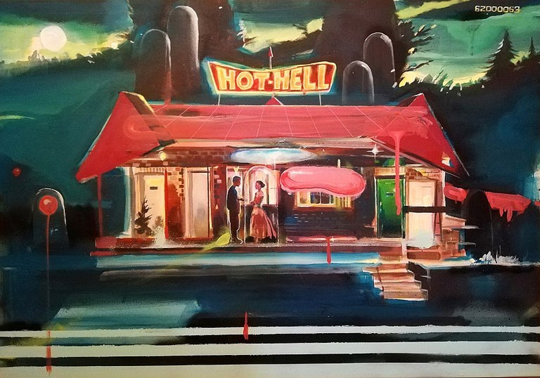 - Descripción: “Arcade Paintings” es una exposición que surge de la colaboración entre la galería sevillana de arte contemporáneo Galería Zunino. Es un proyecto basado en la realización de una serie de pinturas de carácter ilustrativo, inspiradas en universos de videojuego diseñados por Notario, como pretexto para poder crear nuevos imaginarios personales que rompen la lógica del paisaje convencional e incorporan elementos lúdicos.