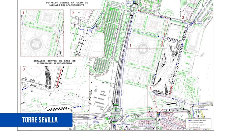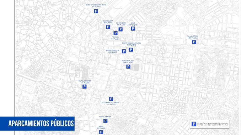 Desde el Centro de Gestión de la Movilidad se facilitará en tiempo real información sobre el grado de ocupación de los distintos aparcamientos públicos a través de la App Tráfico Sevilla, que está disponible en Google Play y tienda IOS, y en los paneles de mensajería variable que existen en distintas calles de la ciudad.