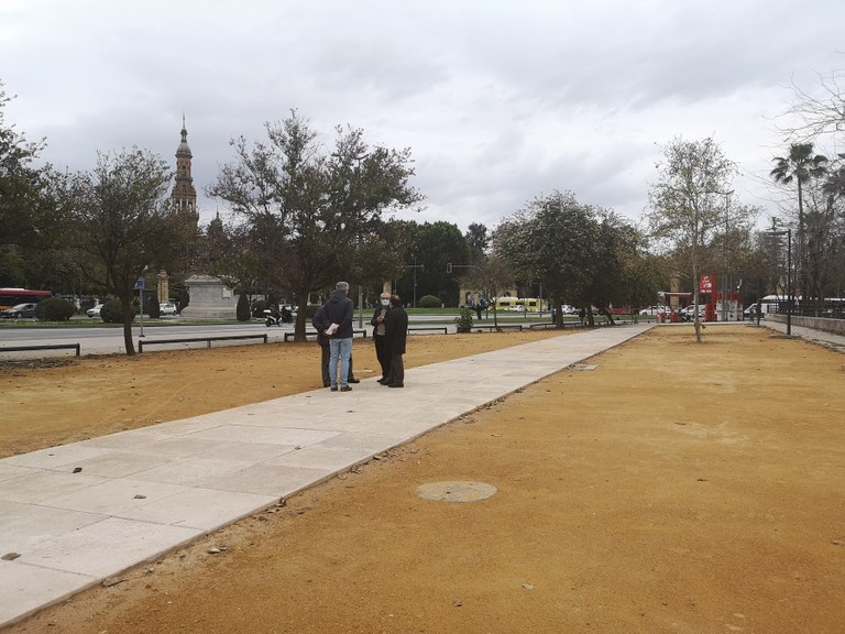 El Ayuntamiento culmina la primera fase para recuperar el uso peatonal y garantizar la protección del patrimonio en el solar de la glorieta de El Cid frente a la sede de la Universidad de Sevilla y tramita ante Patrimonio plantar una treintena de árboles para enriquecer el paisaje y generar sombra