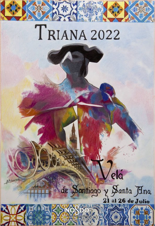 La nominación del cartel que ilustra la Velá de Santiago y Santa Ana de 2022 se ha realizado por primera vez a través de un concurso público. Pablo Rosa ha sido el ganador con la obra ‘Colores de Triana’ de este certamen que se ideó con el objetivo de fomentar la participación, la creatividad de la ciudadanía y la exportación de la singular visión que los trianeros tienen de su barrio a todo el mundo. Rosa es sevillano, funcionario de correos de 37 años de edad que empezó a pintar y dibujar desde pequeño. Se considera un autodidacta de la pintura y también de las nuevas formas de diseño gráfico. Empezó a pintar con más dedicación en los duros meses de confinamiento padecidos durante la pandemia y este es el segundo cartel público que realiza.