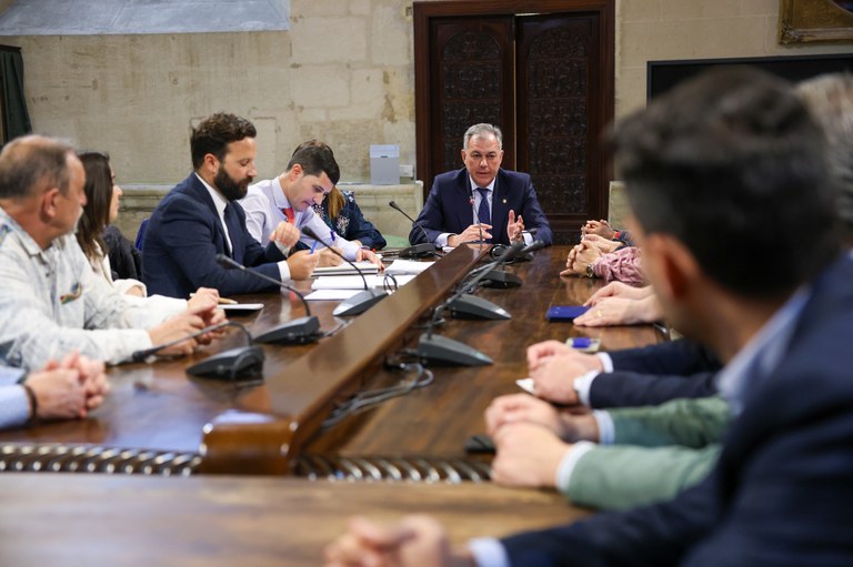 El alcalde de Sevilla, José Luis Sanz, y la delegada de Consumo, Salud, Cementerio y Protección Animal, Silvia Pozo, han mantenido un encuentro de trabajo con representantes de la Federación de Mercados de Abastos de Sevilla (FEMASE) en el Ayuntamiento.