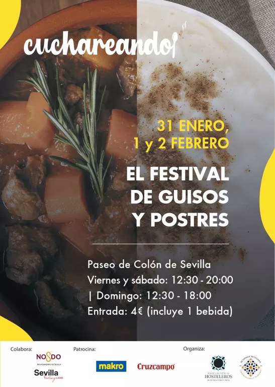 La delegación de Turismo y Cultura del Ayuntamiento de Sevilla ha presentado la segunda edición de 'Cuchareando', el Festival de los Guisos y Postres, que se celebrará en el Paseo Colón del 31 de enero al 2 de febrero. Organizado por la Asociación de Hostelería de Sevilla y Provincia y la Academia Sevillana de Gastronomía y Turismo, con la colaboración del Ayuntamiento de Sevilla, este evento pone en valor la cultura de la tapa sevillana, uno de los grandes emblemas de la ciudad.