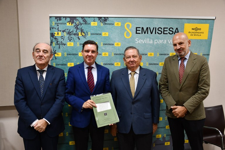 El acto de firma, celebrado en la sede de Emvisesa ante el notario Antonio Luis Ruiz Reyes, ha contado con la presencia del Presidente de Emvisesa, Juan de la Rosa; el delegado de Fiestas Mayores, Manuel Alés; y el director Gerente de Emvisesa, Manuel Morillo García.