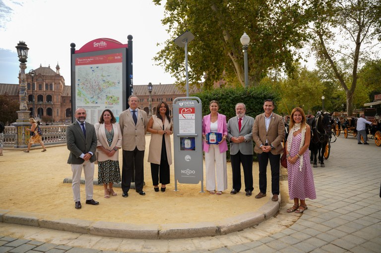 El proyecto de instalación de estos tótems contribuye a mejorar la seguridad en relación con la salud cardiovascular en dos de los espacios más emblemáticos y concurridos de la ciudad, la Plaza Nueva y la Plaza de España, donde cada año transitan miles de personas.