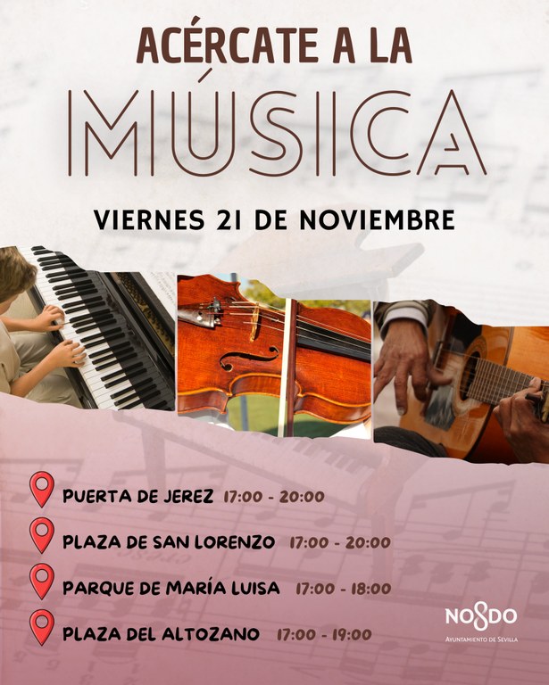 El Ayuntamiento invita a la ciudadanía a disfrutar de esta jornada musical que llenará de sonido y creatividad distintos rincones de Sevilla.