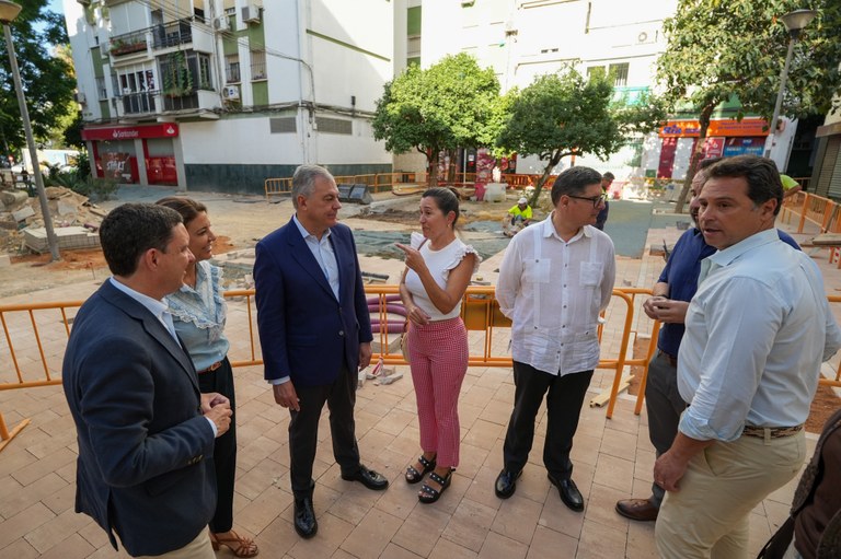 El alcalde de Sevilla, José Luis Sanz, ha visitado las obras de reurbanización de la plaza Blanca Paloma que, con una inversión de más de 200.000 euros, “estamos sacándola del abandono como ya hemos hecho o vamos a hacer en otros muchos espacios de este distrito”