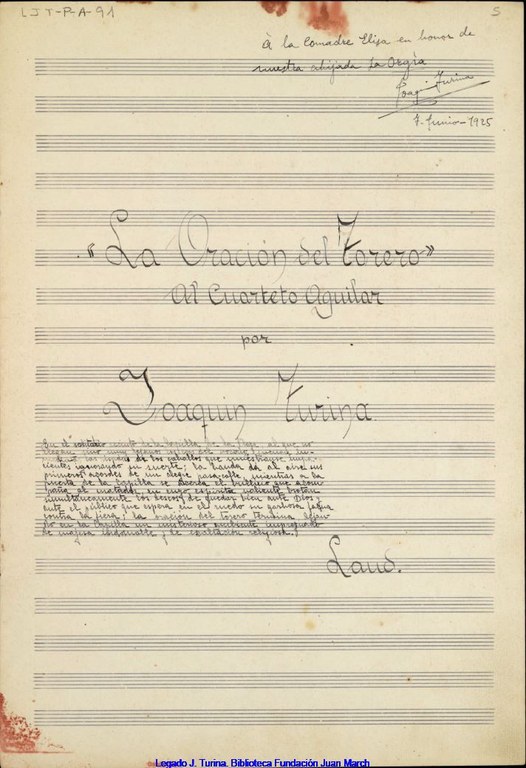 La pieza será interpretada en su versión original para cuarteto de laúdes, tal y como fue concebida por el propio Turina, en un concierto a cargo del Cuarteto Aguilar, que servirá de acto inaugural de esta segunda edición de la Ruta Turina.