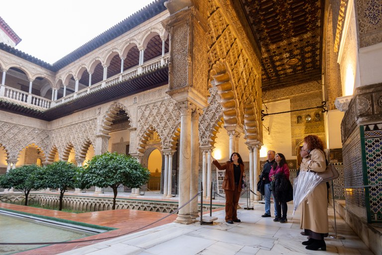 Guiada por guías oficiales de Sevilla, esta ruta permite a los sevillanos adentrarse en el siglo XVI a través de estancias clave, como el Salón de los Tapices, el Cenador de Carlos V, la Sala de Audiencias del Almirantazgo de Castilla y León, el Cuarto del Príncipe, el Salón de Embajadores o la antigua capilla donde se celebró la boda imperial.