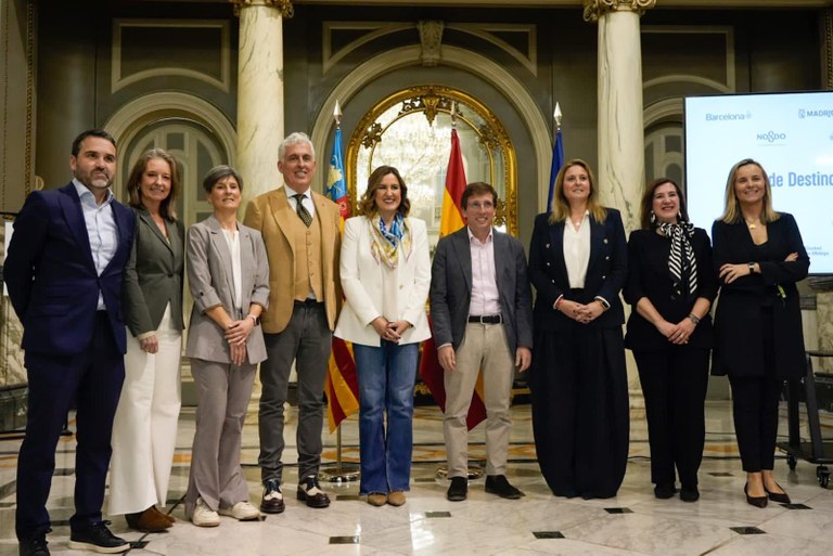 El acuerdo se ha formalizado en el Salón de Cristal del Ayuntamiento de Valencia y ha contado con la participación de representantes institucionales de Barcelona, Madrid, Málaga, San Sebastián, Sevilla, València y Zaragoza, que se convierten así en las ciudades fundadoras de esta nueva red de colaboración turística.
