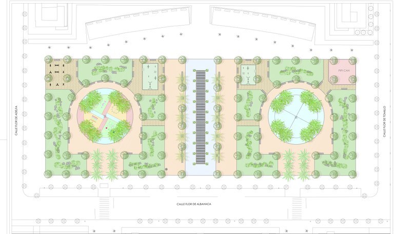 Se ampliará la red de suministro de agua y se colocará una fuente de agua potable. Para darle mayor utilidad a esos espacios circulares y facilitar el juego de los niños y niñas, uno de ellos tendrá un pavimento antideslizante pintado de colores, mientras que el otro se empleará como una pista de patinaje. La pavimentación de las áreas de albero y la colocación también en ellas de césped artificial permitirán, a su vez, que no se produzcan encharcamientos con las lluvias.