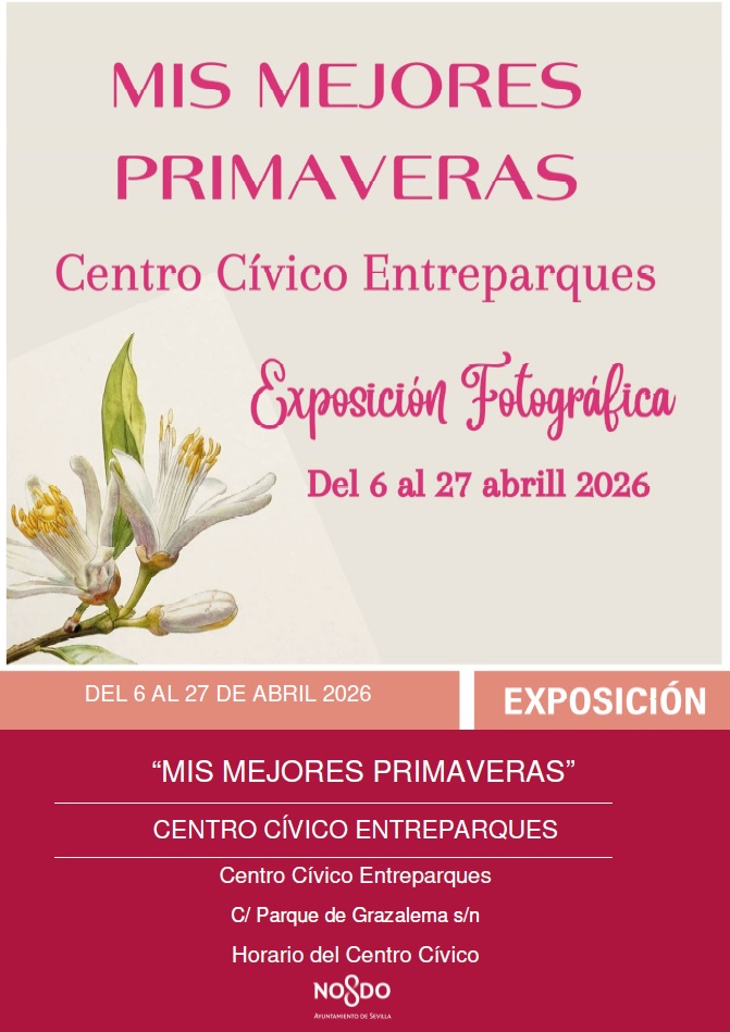 EXPOSICIÓN FOTOGRÁFICA https://www.sevilla.org/centros-civicos/entreparques/eventos/exposicion-fotografica EXPOSICIÓN FOTOGRÁFICA 2026-04-06T00:00:00+02:00 2026-04-27T23:59:59+02:00 Ver todo Centro Cívico Entreparques Detalles del evento Qué Centro Cívico Entreparques Cuándo 06/04/2026 a 27/04/2026 Dónde Centro Cívico Entreparques Agregar evento al calendario iCal Acciones de documento Imprimir Enviar Compartir Compartir en facebook Compartir en twitter Compartir en linkedin Compartir en whatsapp