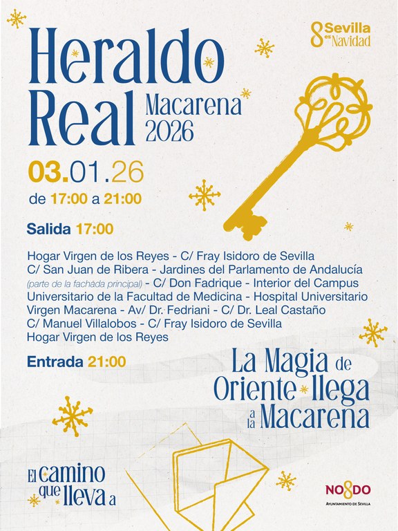 Heraldo Real https://www.sevilla.org/distritos/macarena/eventos/heraldo-real-1 Heraldo Real 2025-12-26T13:00:00+01:00 2026-01-05T14:00:00+01:00 Ver todo Varias ubicaciones - Consultar cartel Detalles del evento Cuándo 26/12/2025 a 13:00 a 05/01/2026 a 14:00 Dónde Varias ubicaciones - Consultar cartel Agregar evento al calendario iCal Acciones de documento Imprimir Enviar Compartir Compartir en facebook Compartir en twitter Compartir en linkedin Compartir en whatsapp