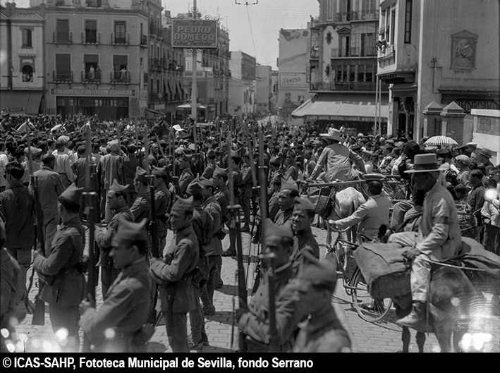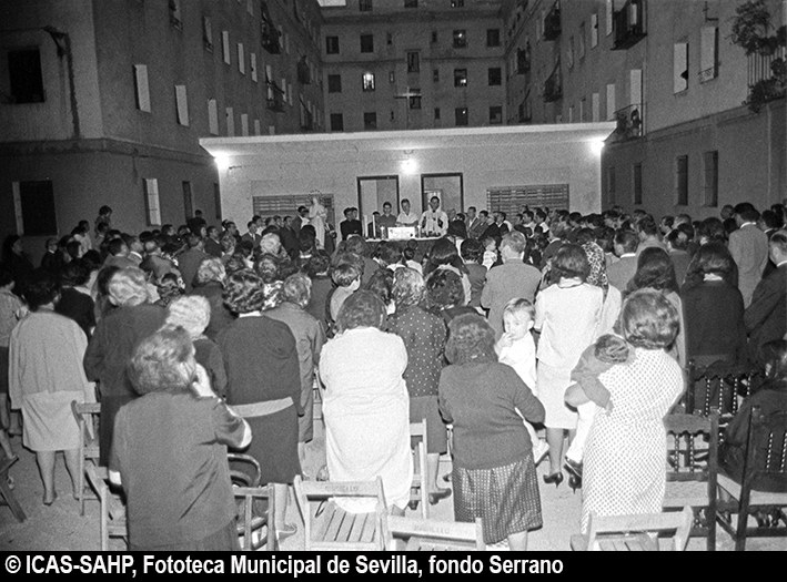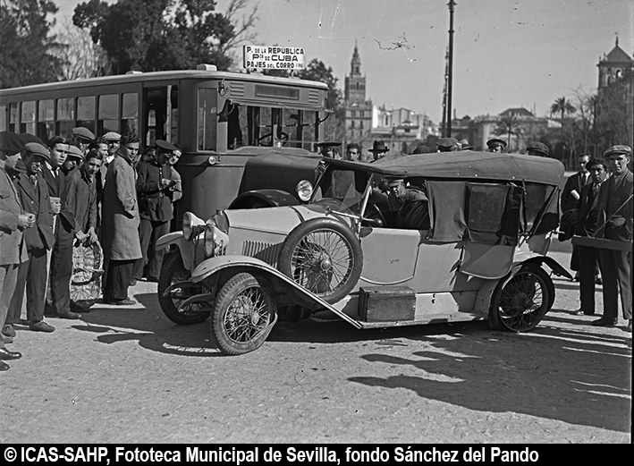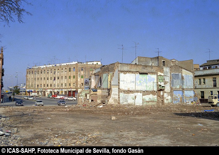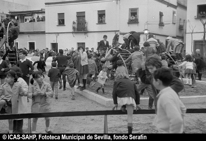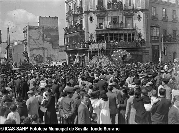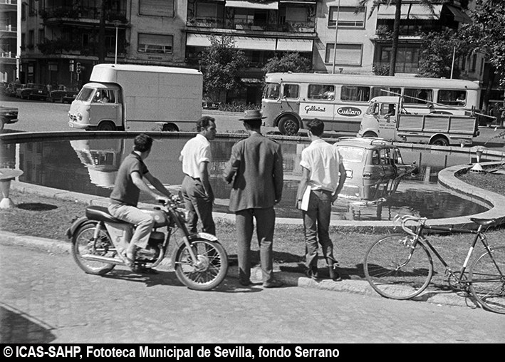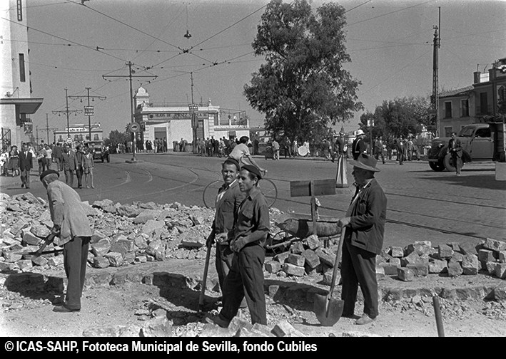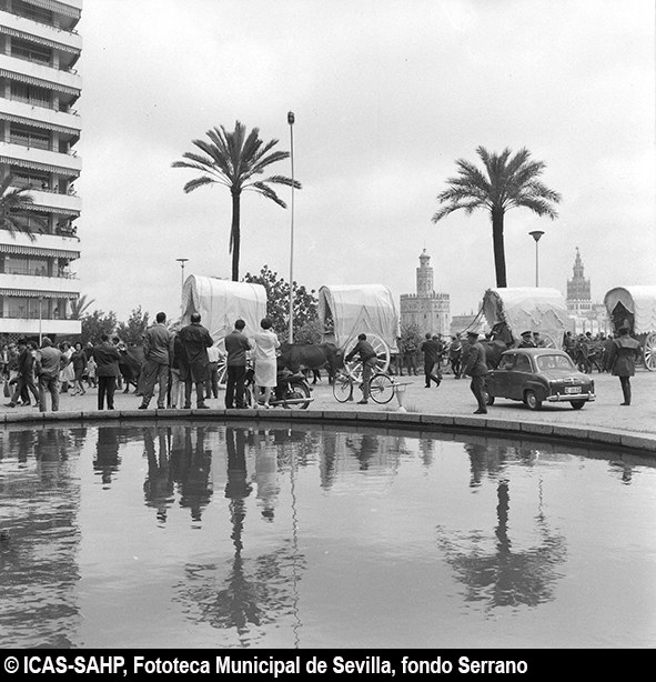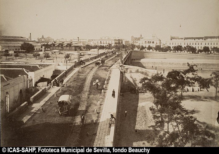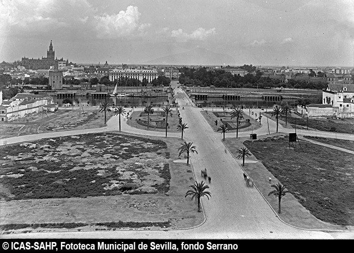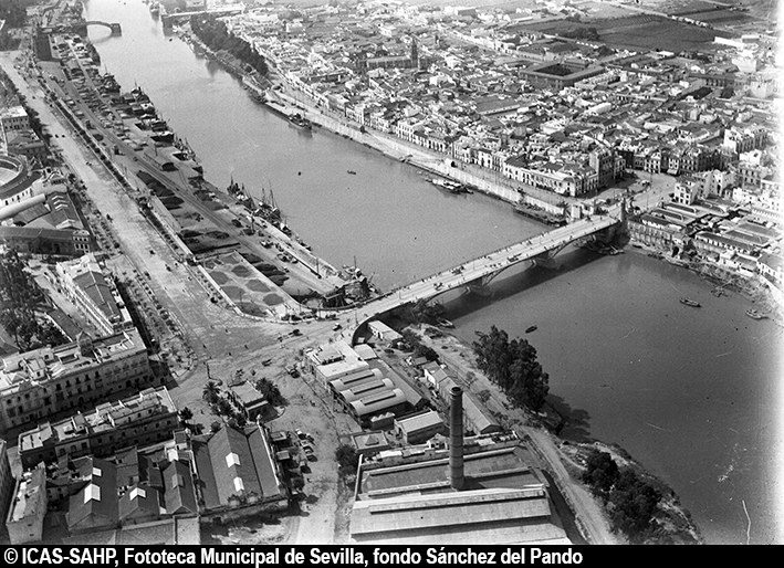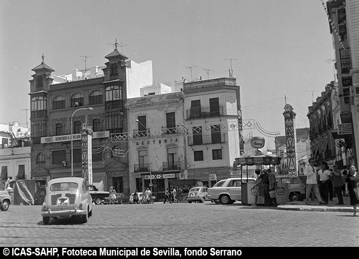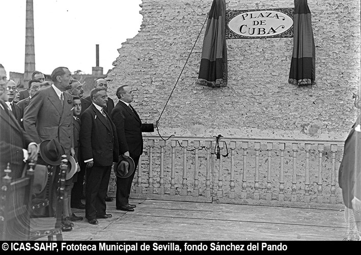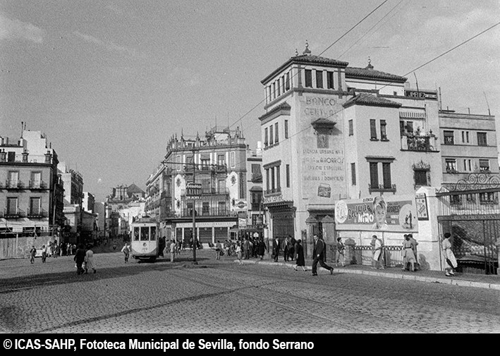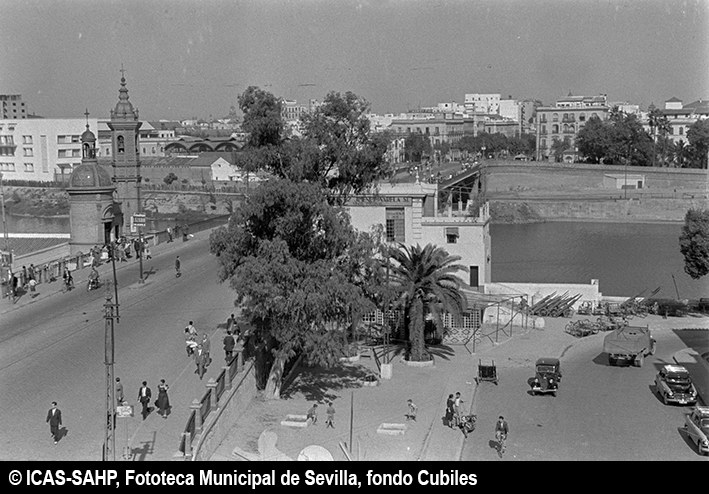 Galería fotográfica Vista aérea del río Guadalquivir a su paso por Sevilla. Los puentes dan acceso a los barrios de la margen derecha: el de Triana, que desemboca en la ... Nº 134. Puente de Sevilla a Triana. E. Beauchy fotº. Plaza del Altozano. A la derecha, las escalinatas de Tagua. Aún no se han construido la capilla ... Plaza del Altozano. Paso de palio de la Virgen de la Esperanza de Triana. Destaca el edificio del Reloj (Balbino Marrón, 1853), que albergaba una ... Plaza del Altozano. Lectura del bando levantando el estado de guerra en Sevilla y su provincia que había sido declarado el día 22 de julio de 1931 a ... Plaza del Altozano. Paso de palio de la Virgen de la Hermandad de la Esperanza de Triana ante el Gran Café Ideal en el edificio de viviendas ... Plaza del Altozano. Sucursales del Banco Central y del Banco Hispanoamericano. Plaza de abastos de Triana con el cartel anunciador de la película ... Plaza del Altozano. Obras en la calzada en la embocadura de las calles San Jacinto y San Jorge. Al fondo, el edificio El Faro, construido hacia 1922 ... Plaza del Altozano. Vista cenital donde se aprecian la capilla del Carmen (1928), el edificio El Faro y el Kiosco de las Flores. Bajo la escalinata ... Plaza del Altozano. Preparativos para la Velá de Santa Ana. Julio de 1967. ©ICAS-SAHP, Fototeca Municipal de Sevilla, fondo Serrano Plaza del Altozano. Velá de Santa Ana. En la plaza, junto a los veladores recogidos, la peana del monumento a Juan Belmonte sin la escultura ... Plaza del Altozano. Velá de Santa Ana. En primer término, el monumento a Juan Belmonte. 1973. ©ICAS-SAHP, Fototeca Municipal de Sevilla, fondo Serrano Inauguración de la primitiva Plaza de Cuba en la conocida como Huerta de la Victoria. Asisten el alcalde de Sevilla Nicolás Díaz Molero, el ... Plaza de Cuba. Accidente entre un automóvil de las fuerzas de Artillería y un autobús de la Compañía de Tranvías a la salida del puente de San Telmo. ... Vista de la Plaza de Cuba y su entorno durante la crecida del río Guadalquivir. En la plaza un cartel de la Inmobiliaria Los Remedios, S. A. Las ... Plaza de Cuba. Se aprecia una primera urbanización con planta semicircular, en la que la vía discurre en línea recta desde el puente hasta la futura ... Plaza de Cuba. El bloque de pisos entre la calle Asunción y la avenida de la República Argentina aún no se ha entregado ni se ha colocado la fuente ... Plaza de Cuba. Ejecución del proyecto de construcción de la fuente central y el nuevo acerado. Junto al cine Los Remedios, en la esquina con la calle ... Plaza de Cuba. Bendición de los nuevos microbuses con la asistencia del alcalde Félix Moreno de la Cova. Pertenecen a la línea B que cubría el ... Plaza de Cuba. Paso de las carriolas de la Hermandad del Rocío de Sevilla de la parroquia del Salvador. 11 de mayo de 1967. ©ICAS-SAHP, Fototeca ... Plaza de Cuba. Accidente de una furgoneta que aparece sumergida en la fuente central. 1 de julio de 1967. ©ICAS-SAHP, Fototeca Municipal de Sevilla, ... Plaza de Santa Ana. Vista cenital con la iglesia de Santa Ana y una fuente pública en el centro, hoy desaparecida. 1920 ca. ©ICAS-SAHP, Fototeca ... Plaza de Chapina. Cubiertas por las aguas por la crecida del río Guadalquivir. 22 de diciembre de 1925.©ICAS-SAHP, Fototeca Municipal de Sevilla, ... Plaza de Chapina. Bulevar central con la estatua de Rodrigo de Triana, trasladada aquí en 1948 desde la Plaza de los Conquistadores. Edificio de ... Plaza de Chapina. Derribos en el entorno con motivo de las obras de la EXPO’92. El monumento de Rodrigo de Triana se ha trasladado a la plaza de ... Plaza de San Gonzalo. Visita a las obras de la iglesia de San Gonzalo en el barrio León del abate Lambert, alcalde de Orán (Argelia), acompañado por ... Plaza de San Gonzalo en el barrio Léon. Inauguración de las obras de reforma: mejora en la pavimentación, iluminación y arbolado y remozado del ... Plaza de Anita en el barrio León. Inauguración del parque infantil tras las obras de reforma. 23 de enero de 1966. ©ICAS-SAHP, Fototeca Municipal de ... Plaza San Martín de Porres. Vista cenital de las obras de construcción del ambulatorio del Seguro de Enfermedad Amante Laffón junto al mercado del ... Plaza Góngora en el barrio del Tardón. Bendición de la sede provisional de la nueva parroquia de San Joaquín en las dependencias de las antiguas ... Solar donde se ubica actualmente la plaza de los Hermanos Cruz Solís. Obras para la EXPO’92 y urbanización del tramo final de la calle Castilla. ... Acciones de documento Imprimir Enviar Compartir Compartir en facebook Compartir en twitter Compartir en linkedin Compartir en whatsapp