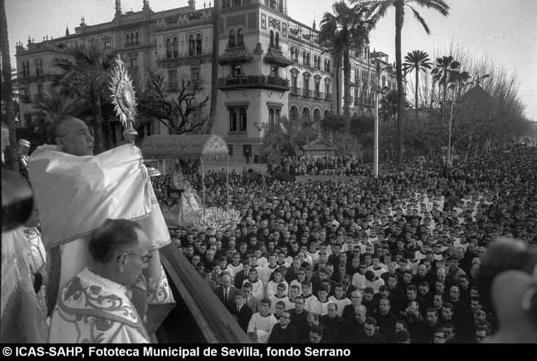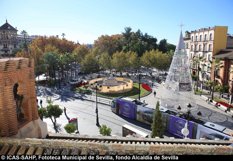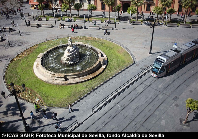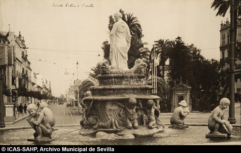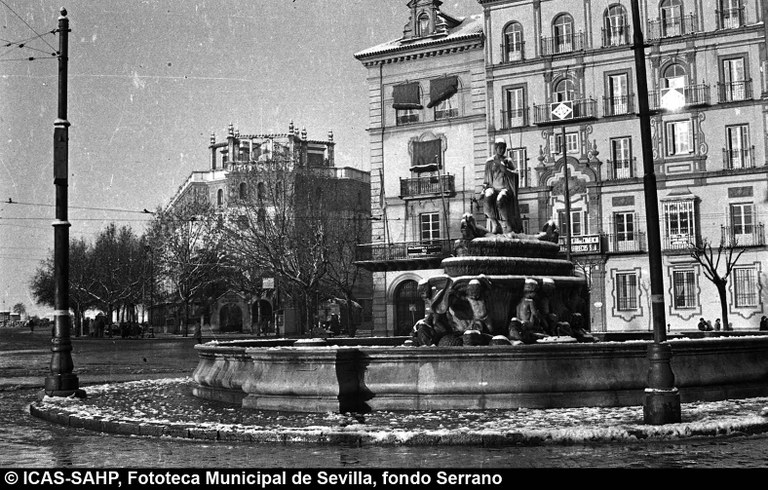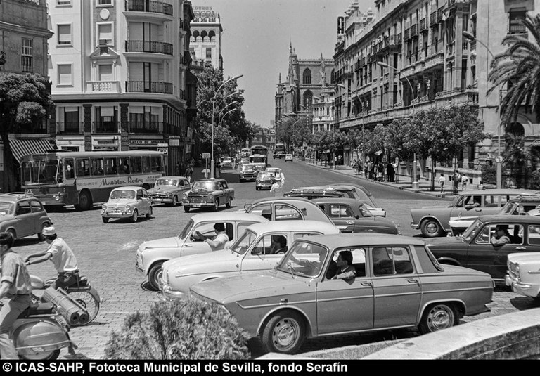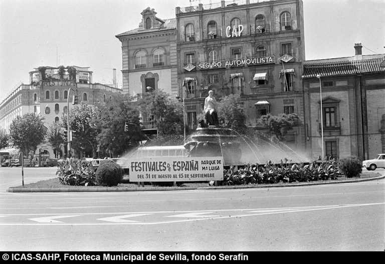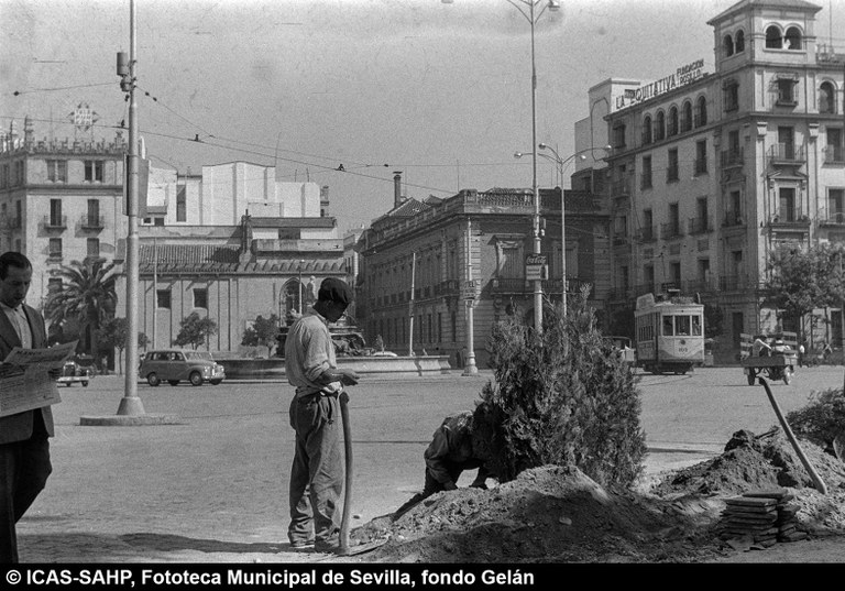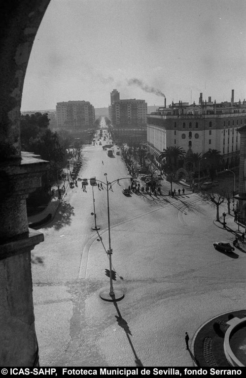 Galería fotográfica Detalle del plano de 1848 en el que se aprecia el entorno de la Puerta de Jerez junto al arroyo Tagarete. Ésta fue derribada con los paños de muralla ... Entorno de la Puerta de Jerez por el que circula un tranvía de mulas. Al fondo, el antiguo palacio de los Vicentelo de Leca, propiedad de los condes ... El teatro de verano Eslava en los jardines del mismo nombre fue construido en 1887 por Antonio Capó sobre el anterior del mismo nombre y clausurado ... Embocadura de la calle San Fernando hacia la Puerta de Jerez. En el centro el antiguo palacio de los Vicentelo de Leca, entonces Intendencia Militar ... Tranvía eléctrico con jardinera circulando por la Puerta de Jerez esquina a la calle Almirante Lobo. Bajo el pavimento discurría ya el arroyo ... Vista aérea de la Puerta de Jerez y el hotel Alfonso XIII tras las obras de ensanche y derribo de las manzanas de edificios de la calle Maese Rodrigo ... La fuente de Híspalis, encargada por el Ayuntamiento en 1928 al escultor Manuel Delgado Brackenbury y diseñada por Juan Bautista Míguez Roca. Fue ... La fuente de Híspalis, encargada por el Ayuntamiento en 1928 al escultor Manuel Delgado Brackenbury y diseñada por Juan Bautista Míguez Roca. Fue ... Manifestación de obreros en paro durante el reparto de bonos en el Paseo de Cristina. 26 de septiembre de 1931 ©ICAS-SAHP, Fototeca Municipal de ... Fachada de la Casa-Palacio de los Guardiola. La casa que perteneció a Andrés Parladé y Sánchez de Quirós, conde de Aguiar, fue construida por los ... Manifestación espontánea contra Manuel Azaña en la Puerta de Jerez. 8 de abril de 1934. ©ICAS-SAHP, Fototeca Municipal de Sevilla, fondo Serrano Francisco Franco a su llegada al cuartel general en el Palacio de Yanduri el 7 de agosto de 1936. Se trata del primer cuartel general de Franco en ... Salida de tropas hacia el frente a su paso por la Puerta de Jerez. 1936-1937. ©ICAS-SAHP, Fototeca Municipal de Sevilla, fondo Serrano Celebración del final de la Guerra Civil el 17 de abril de 1939. Francisco Franco saluda desde el balcón del Palacio de Yanduri a un grupo de la ... Apertura de los actos de la Semana de la Santa Misión. Procesión misional de la comitiva que había partido del Seminario en el Palacio de San Telmo. ... Inundación de la Puerta de Jerez y Avenida de la Constitución por la rotura del muro de contención de las obras de defensa del río Guadaíra. Enero de ... La nevada del 2 de febrero de 1954 cubrió de blanco la fuente de Híspalis. ©ICAS-SAHP, Fototeca Municipal de Sevilla, fondo Serrano Puerta de Jerez. Obras de mejora en los aledaños de los jardines de Cristina. 1955-1959 ©ICAS-SAHP, Fototeca Municipal de Sevilla, fondo Gelán Coronación canónica de María Auxiliadora de los Salesianos de la Santísima Trinidad. Acto oficiado por el cardenal Pedro Segura en la Puerta de ... Tranvía con remolque a su paso por Puerta de Jerez. 1957-1959. Los últimos tranvías circularon en Sevilla en 1960. ©ICAS-SAHP, Fototeca Municipal de ... La escultura de San Cristobal, obra de Martínez Montañés de la Iglesia del Salvador es portada en un jeep militar hacia el Parque de Mª Luisa con ... Caseta del Centro Meteorológico Nacional en las inmediaciones de la Puerta de Jerez. 1959 ©ICAS-SAHP, Fototeca Municipal de Sevilla, fondo Serafín Vista cenital de las inmediaciones de la Puerta de Jerez. A la derecha el Hotel Cristina, construido para la Exposición Iberoamericana de 1929. ... Colocación de nuevo alumbrado público en la Puerta de Jerez. 1961-1963 ©ICAS-SAHP, Fototeca Municipal de Sevilla, fondo Serrano La grúa de un camión del Servicio de Bomberos instalando un árbol de Navidad en la Puerta de Jerez. 1965-1970 ©ICAS-SAHP, Fototeca Municipal de ... Clausura de la Santa Misión. Acto celebrado en la Puerta de Jerez y oficiado por el cardenal José María Bueno Monreal y presidido por el paso de la ... Paso del Cristo de la Buena Muerte en su primera salida de los Estudiantes desde la Fábrica de Tabacos. Marzo de 1967 ©ICAS-SAHP, Fototeca Municipal ... Sondeos de prospección para la construcción del metropolitano en Sevilla. Julio de 1968. ©ICAS-SAHP, Fototeca Municipal de Sevilla, fondo Serafín Intenso tráfico rodado en la Puerta de Jerez dirigido por un guardia urbano. Junio de 1968 ©ICAS-SAHP, Fototeca Municipal de Sevilla, fondo Serafín Anuncio de los Festivales de España que se celebraban en el mes de septiembre en el Parque de Mª Luisa. Agosto de 1972 ©ICAS-SAHP, Fototeca Municipal ... Nuevos semáforos en la Puerta de Jerez. Regulación del tráfico e instalación de una isleta que dividía las direcciones de la calzada. 1975 ... Tras la peatonalización del eje San Fernando-Puerta de Jerez-Avenida de la Constitución-Plaza Nueva inaugurada en 2007, la fisonomía y el uso público ... Preparativos para la Navidad en Puerta de Jerez. La fuente de Híspalis en obras de rehabilitación y recuperación de las figuras de los niños “meones” ... Acciones de documento Imprimir Enviar Compartir Compartir en facebook Compartir en twitter Compartir en linkedin Compartir en whatsapp